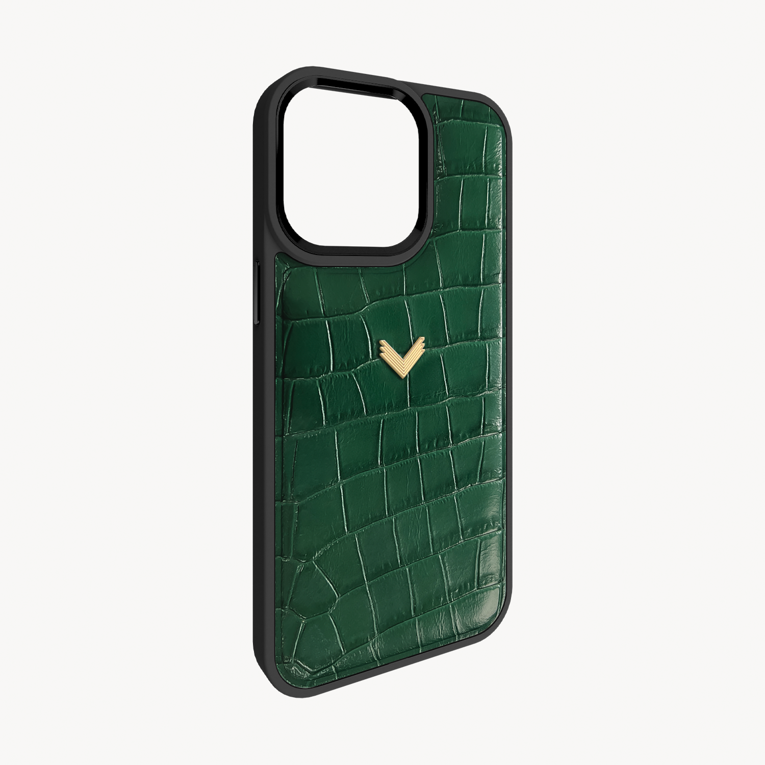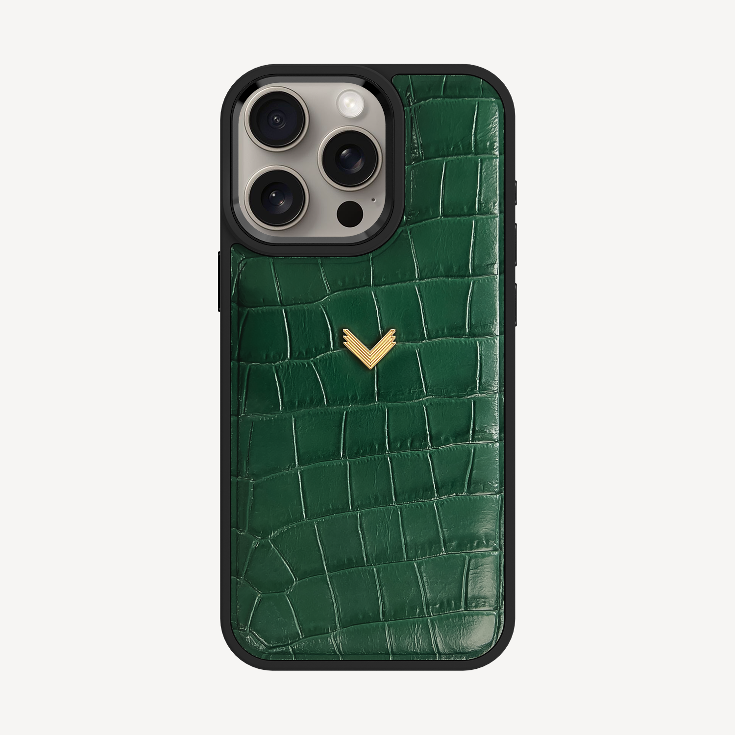 iPhone 15 Pro Phone Case, Calf Leather, Crocodile Texture