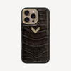 IPHONE 16 PRO MAX PHONE CASE, CROCODILE LEATHER, ANTIQUE VLOGO