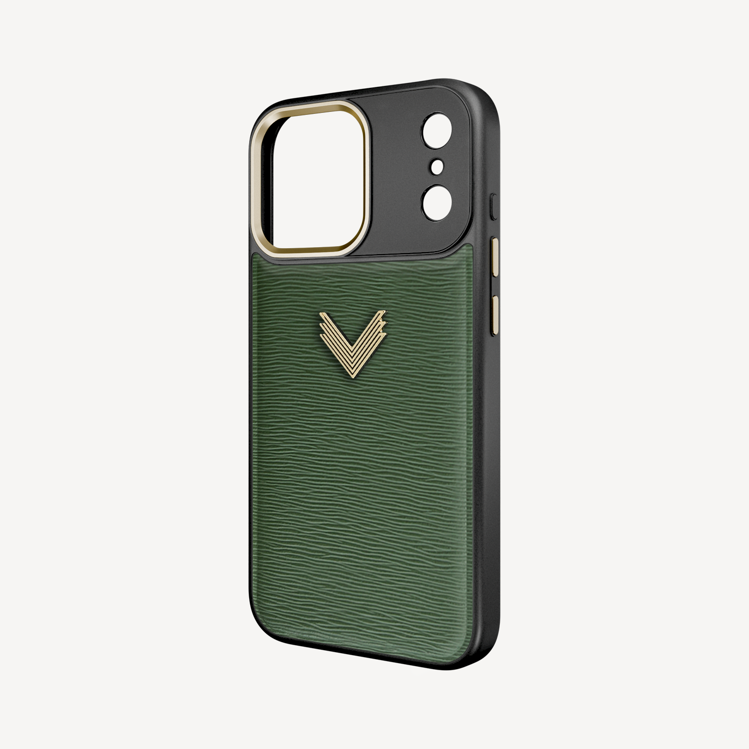 IPHONE 17 PRO MAX PHONE CASE, CALF LEATHER, ANTIQUE VLOGO